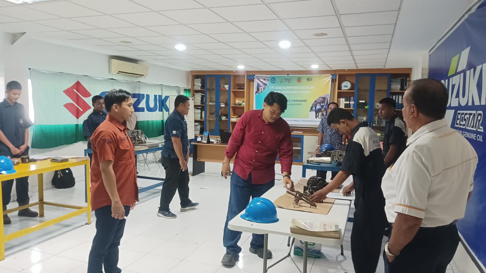 Diksibersulawesi.id | Makassar –Kolaborasi antara dunia pendidikan vokasi dan industri kembali diperkuat melalui pelaksanaan Uji Kompetensi Keahlian (UKK) berbasis industri yang digelar SMK Negeri 3 Makassar bekerja sama dengan PT Megah Putra Sejahtera pada unit Suzuki Pettarani Makassar. Kegiatan ini menjadi langkah strategis dalam memastikan lulusan SMK memiliki kompetensi yang sesuai dengan kebutuhan dunia kerja.